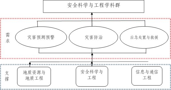 以国家安全生产重大需求为导向,建设以一级学科安全科学与工程为基础,与一级学科地质资源与地质工程、信息与通信工程强强联合的安全科学与工程学科群,形成矿山致灾因素→灾害预测预警→灾害防治→灾害感知→应急处置与救援的全链条矿山安全保障体系。